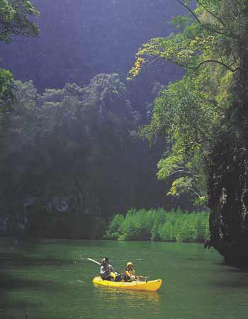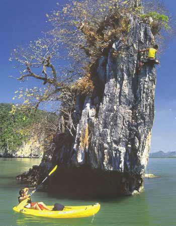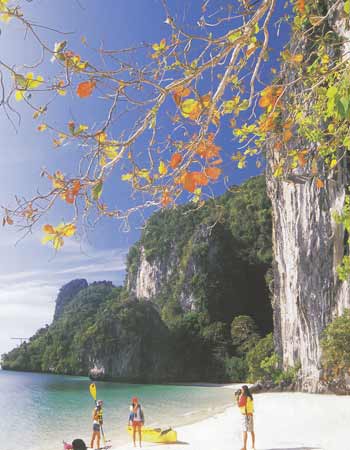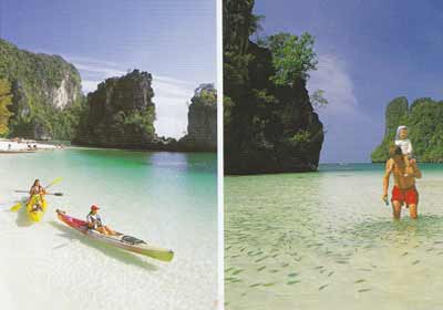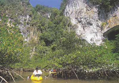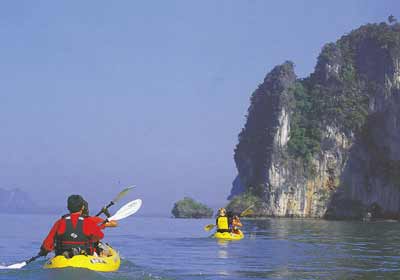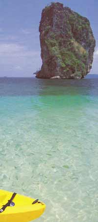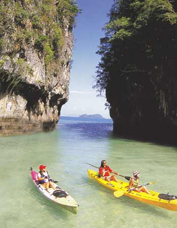 จังหวัดกระบี่ เมืองท่องเที่ยวที่อาจเรียกได้ว่าเป็นสวรงสวรรค์ของการพายเรือท่องเที่ยวทางทะเล ด้วยว่าจังหวัดนี้มากมายด้วยทรัพยากรทเี่อื้อต่อการพายเรือคายักลำเล็กๆ ท่องเที่ยวไปตามลำคลองชายฝั่งสายเล็กๆ ที่ส่วนใหญ่น้ำในคลองก็จะใสสะอาด บางแห่งถึงกับใสปิ๊งเป็นน้ำประปา หลายๆ แห่งแม้น้ำจะไม่ใส แต่ก็มากมายด้วยป่าโกงกาง พืชพรรณไม้ในเขตทรอบีคอลต่างๆ โชคดีนักท่องเที่ยวยังมีโอกาสได้เจอฝูงสัตว์ป่า อย่างลิงค่างหลากพันธุ์ ปูปลาป่าชายเลนสีสันแปลกๆ หรือเจ้าตะกวดตัวใหญ่ยักษ์ออกมาท่องน้ำหากินให้เห็นกันจะๆ หรือไม่ก็ได้เห็นพรรณไม้หายากอย่างจันทน์ผาต้นยักษ์ๆ หรือกล้วยไม้ป่า รองเท้านารีเหลืองกระบี่ที่ขึ้นชื่อลือชา