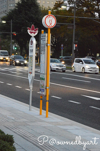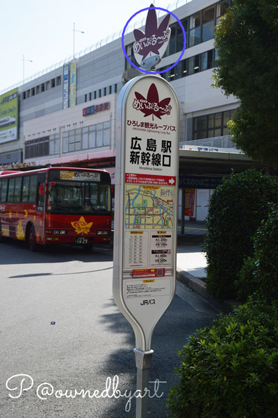ป้ายรถแดง Hiroshima Station จะอยู่บริเวณด้านข้าง Hiroshima Grandvia Hotel หาไม่ยาก เพราะเป็นโรงแรมใหญ่และอยู่ติดกับสถานี JR Hiroshima เลย
