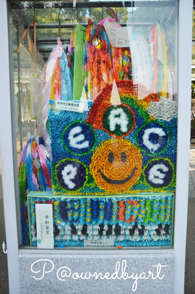 ศิลปะพวกนี้ทำจากนกกระเรียนตัวเล็ก ๆ มาเรียงต่อกันเป็นภาพ สื่อให้เห็นถึงความสงบสุขและสันติภาพ