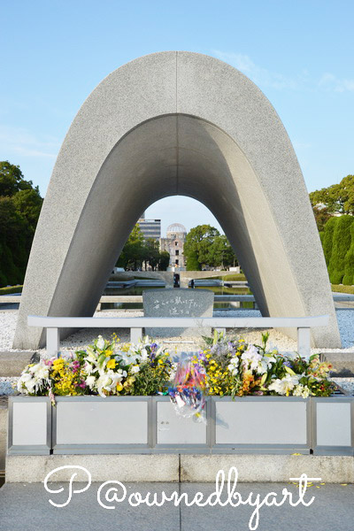 ก่อนถึงพิพิธภัณฑ์เราจะเจอ Cenotaph for the A-bome Victims ถ้ามองทะลุผ่านไปจะเจอ Flame of Peace และ A-bome Dome พอ 3 จุดนี้มาอยู่เรียงกัน เราก็จะลากเส้นตรงได้นั่นเอง 5555